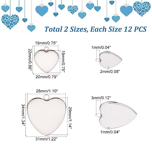 UNICRAFTALE 24 pz 2 dimensioni Vassoio Cuore Fascino Acciaio Inossidabile Lunetta Vuota Ciondolo Vassoi Base Ciondolo Fascino Spazi Vuoti per Foto Ciondolo Resina Creazione di Gioielli