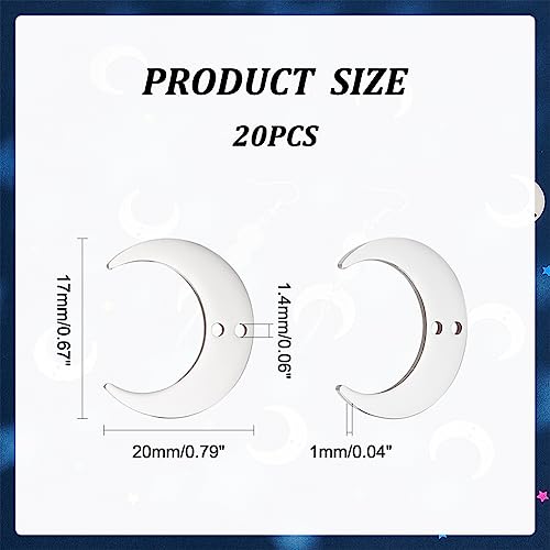 UNICRAFTALE 20 pz 17 mm di Lunghezza 2 Loop Connettori A Forma di Luna Ciondoli Connettori A Maglie Piatte in Metallo Incisione Etichetta Vuota Pendenti A Doppio Foro per La Creazione di Gioielli