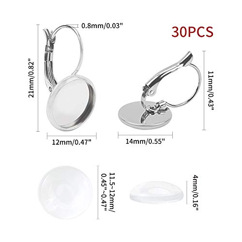 UNICRAFTALE 30 Set Orecchino Che Fa Orecchini A Leva con Cabochon in Acciaio Inossidabile con Base A Leva Posteriore Orecchino Rotondo Spazi Vuoti con Cabochon in Vetro 12mm per Creazione di Gioielli