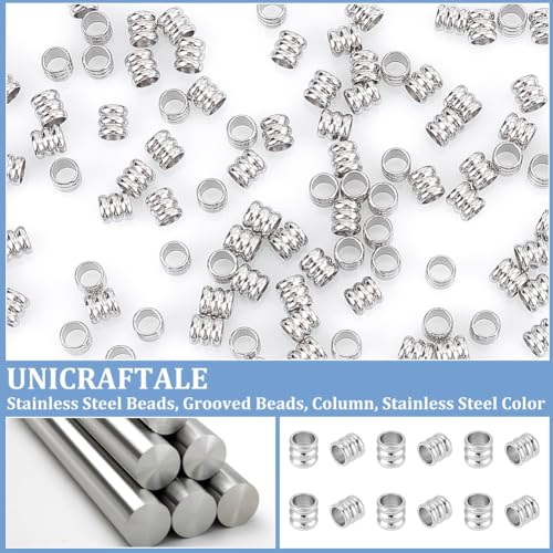 UNICRAFTALE 120 pz Perline Distanziatrici con Scanalatura Perline A Colonna In Acciaio Inossidabile Perline per Cordino 2.8 mm Perline Distanziatrici con Foro Grande per Creazione di Gioielli Collana