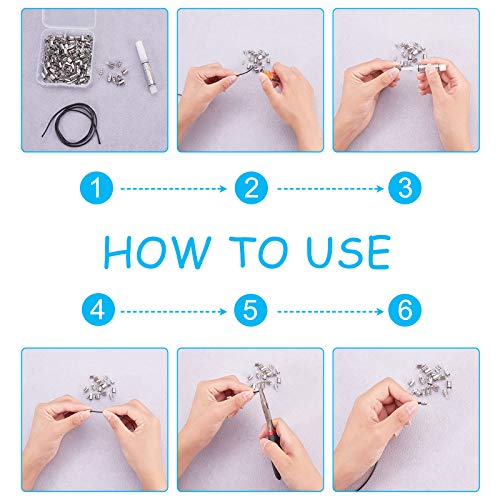 UNICRAFTALE 200 pz Pieghevole Crimp Ends Crimp Ends Fold Over Cord Ends 6mm Terminators Clamp End Tips Kit di Ricerca di Gioielli per Braccialetti, Colore Acciaio Inossidabile