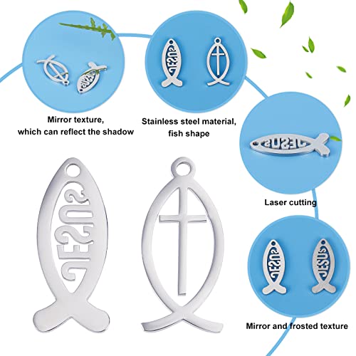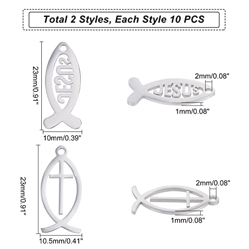 UNICRAFTALE 20 pz 2 Stile Acciaio Inossidabile Colore Pesce Charms 23mm Lungo 304 Acciaio Inossidabile Gesù Pesce Pendenti Pesce Verticale con Croce Charm Ciondola, Ciondoli di Pesce In Metallo