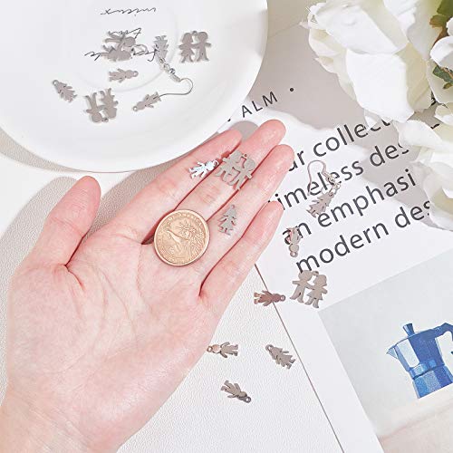 UNICRAFTALE 24 pz 3 stili Silhouette Umana Charms 304 Ciondoli In Acciaio Inossidabile 1.2mm Charms Con Foro Piccolo Forme Miste Fascino per Creazione di Gioielli, Colore Acciaio Inossidabile