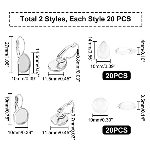 QUANTITÀ: viene fornito con 40 pezzo di orecchini a monachella e 40 pezzi di cabochon in vetro trasparente, consentono di aggiungere facilmente ciondoli o gocce in rilievo per renderli semplici, ancora eleganti orecchini a goccia