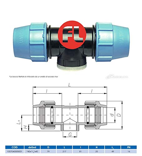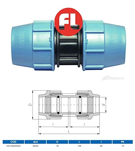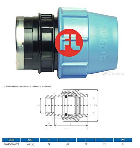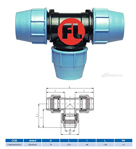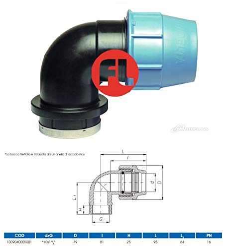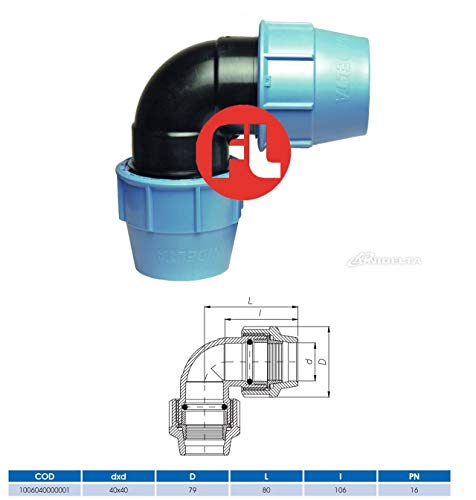 Unidelta raccordi in pp compressione diametro 40 attacco 1 1/4" polietilene tubi, gomito 90° femmina