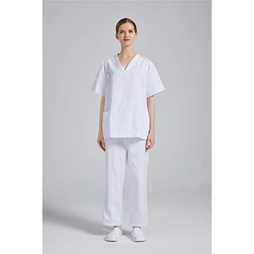 Uniforme Medica con Maglia e Pantaloni Uniformi Mediche Camice Uniformi sanitarie 311-511 - XS, Bianco