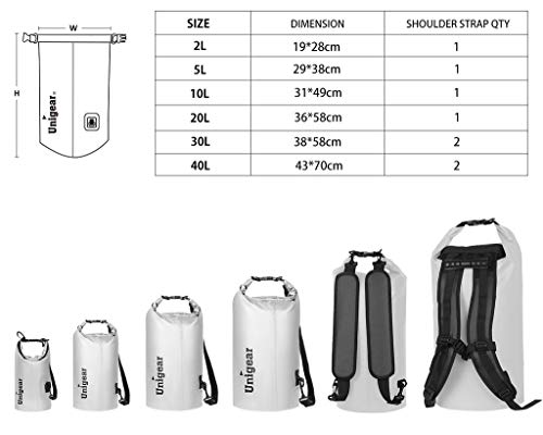 Unigear Borsa Dry, Borse Impermeabili con Borsa Dry Phone e Tracolla Regolabile Lunga per Canottaggio, Kayak, Pesca, Rafting, Nuoto, Campeggio e Snowboard