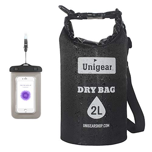 Unigear Borsa Impermeabile, Dry Bag Peso Leggero 210T 2L / 5L / 10L / 20L, Borse Ingranaggi Galleggianti a Secco per Andare in Barca, Kayak, Pesca e Campeggio con Custodia Impermeabile (20L, Nero)
