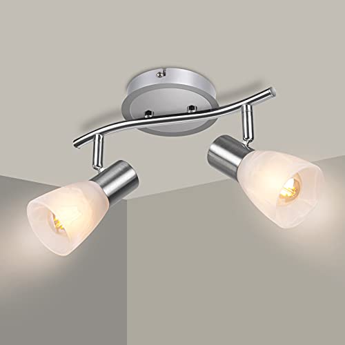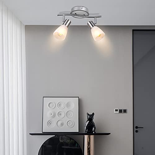 Unikcst Plafoniera LED 2 Faretti Led Orientabili, Luminario Plafoniera con Vetro Girevole, Faretti da Soffitto Moderni per Cucina Camera, 2 Lampadine LED E14 Incluse (4W, 400LM, 2700K Bianco Caldo)