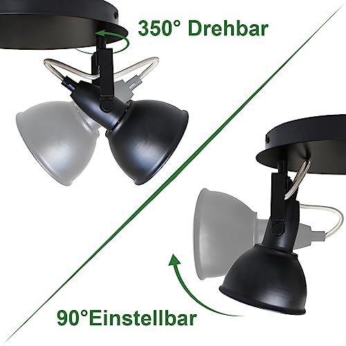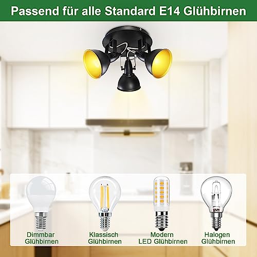 Unikcst Plafoniera LED 3 Spot Orientabili, Spots da Soffitto Girevoli Nero Opaco, Applique Murale per Bagno Soggiorno Cucina, Portalampada E14, senza lampadina