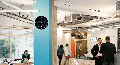Unilux 400094567 Orologio da Parete On Time 4 Differenti Fusi Orari, Nero Con Lancette Bianche
