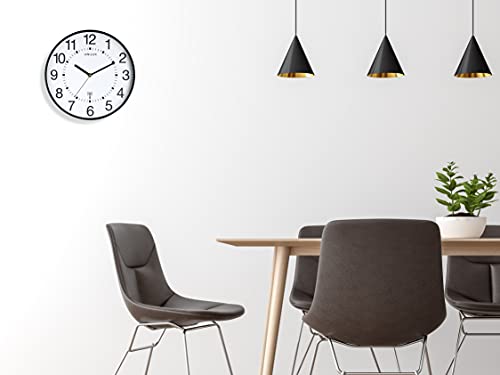 Design: l'orologio da parete Unilux Wave ha un design rotondo senza tempo. I numeri arabi dell'orologio da parete sono grandi e ben leggibili anche a distanza massima (fino a 35 metri).