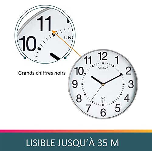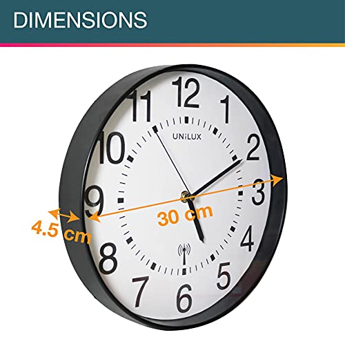 Unilux - Orologio radio da parete radio Wave, 30 cm, orologio radiocontrollato con quadrante moderno, regolazione automatica dell'ora e regolazione dell'ora estiva e invernale