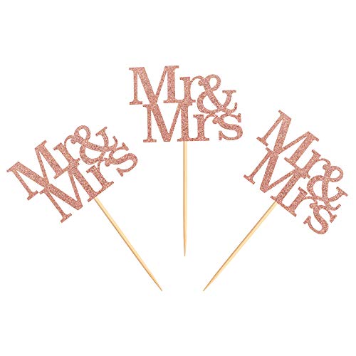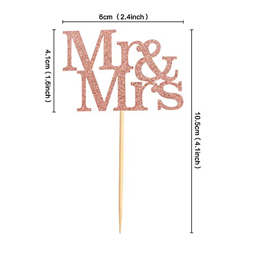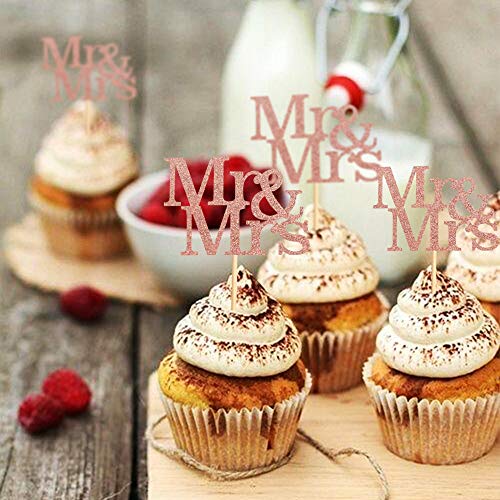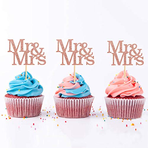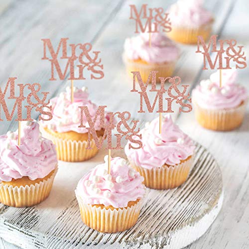 Unimall Global - 24 topper per cupcake con scritta "Mr Mrs", amore, signore signore signore, cupcake, colore oro rosa, glitterato, decorazione per torta nuziale