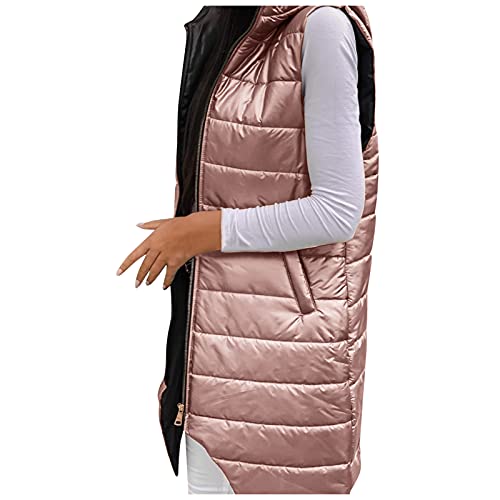 Uninevp Piumino da donna, di media lunghezza, invernale, con cappuccio, senza maniche, caldo piumino con tasche, Colore: rosa., M