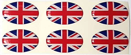 Union Jack bandiera britannica ovale decalcomania badge 3D resina gel con cupola 6 pezzi 25 mm x 15 mm