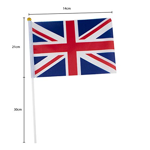 Union Jack 10 PZ Bandierine da mano complete di bastoncino, rosso bianco blu, per eventi sportivi, matrimoni reali e feste nazionali - di TRIXES