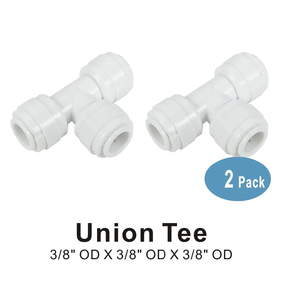 Union Tee 3/8" OD Quick Connect Fitting Parts for Water Filters and RO Reverse Osmosis Systems - 2 PACK