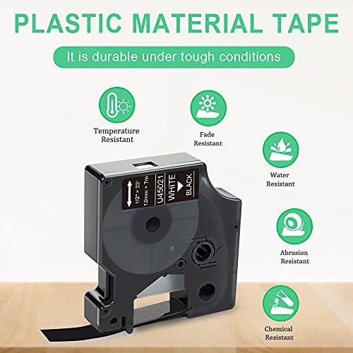 Dimensioni: 12mm (Larghezza) x 7m (Lunghezza), 0.47 Pollici x 23 Piedi. Colore: Bianco su Nero