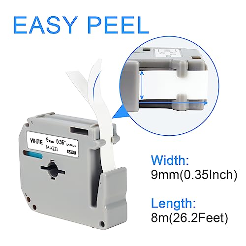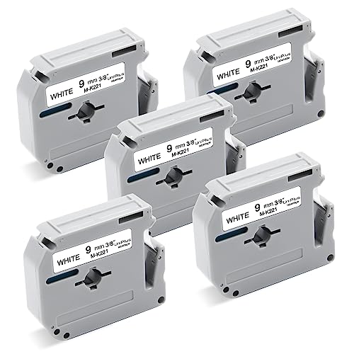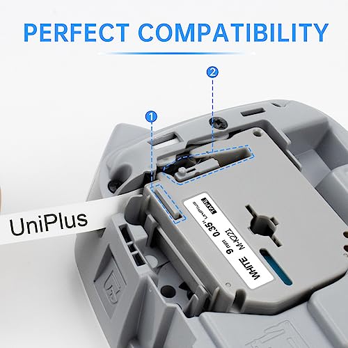 UniPlus Nastri Etichette Compatibile con Brother M-K221 MK221 M-K221BZ 9mm x 8m Nero su Bianco Nastro, Non-Laminato per Brother PT-90 PT-M95 PT-80 PT-100 PT-110 PT-55 PT-65 PT70 PT85 BB4, 5Pz