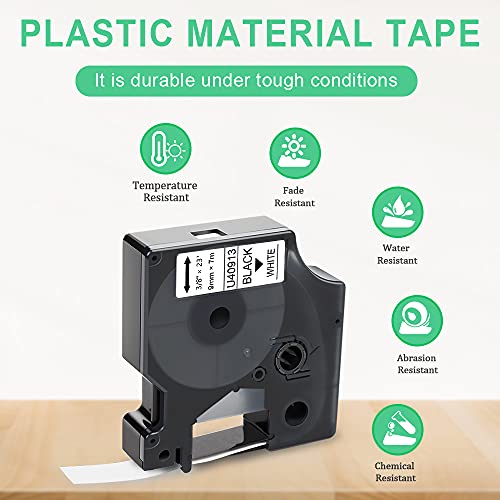 UniPlus 4x Nastri per Etichette Sostituzione di Dymo D1 40913 S0720680 Nastro per Dymo LabelManager 160 120P 280 220P 210D 260P PnP 300 360D 420P 450D LabelPoint 150 250, 9mm x 7m, Nero su Bianco