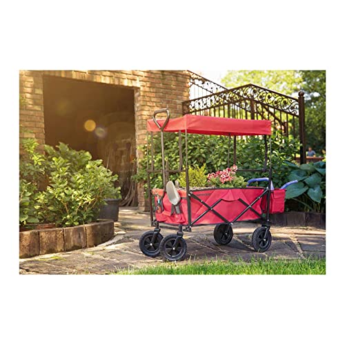 Uniprodo Carretto a Mano Pieghevole Carretto da Giardino Uni_Cart_01 (con Tetto, Rosso, 100 kg, Ferro, Poliestere)