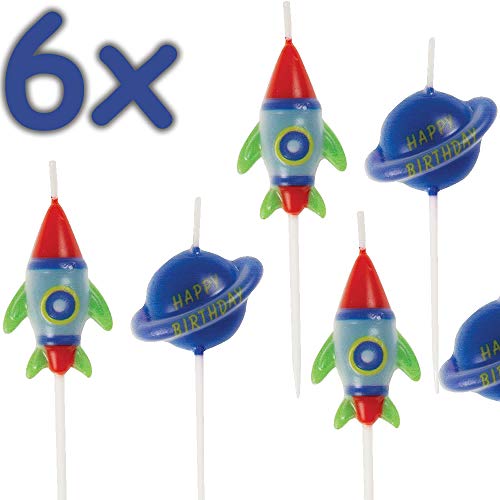 Unique- Candele di Compleanno-Festa nello Spazio Esterno-Set da 6, Multicolore, 73270