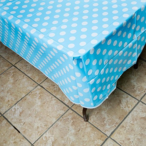 Tovaglia plastificata con pois azzurro misura 274 centimetri x 137 centimetri