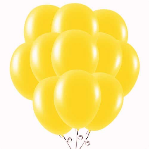 Palloncini gialli che misurano circa 30 cm quando gonfiati (spediti sgonfi), da riempire con aria o elio