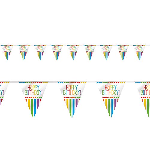 Unique Party 47118 - 3,6 m Bandierine Arcobaleno "Happy Birthday" per Feste