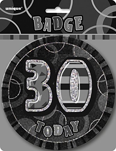 Unique Party 55284 - 15 cm Spilla Gigante da 30° Compleanno Nero Brillante