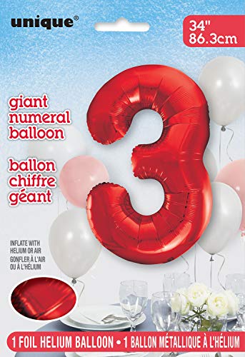 Unique Party 55853 - Palloncino Gigante - Numero 3 - 86cm - Rosso