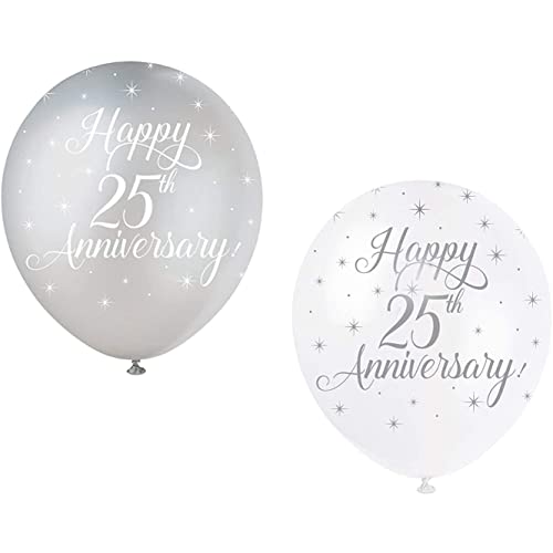 Confezione da 5 Palloncini in Lattice "Happy 25th Anniversary" in Colori Assortiti
