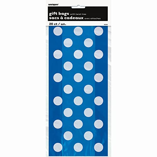 Unique Party 62064 - Buste in Cellophane a Pois Blu Reale per Festa, Confezione da 20