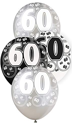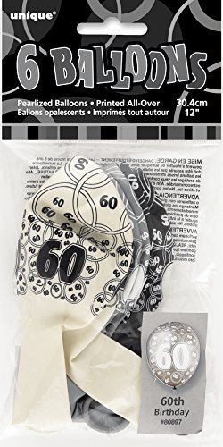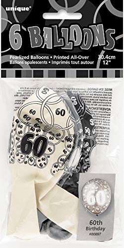 Unique Party 80897 - 30 cm Palloncini Lattice Nero Brillante e Argento per 60° Compleanno, Confezione da 6
