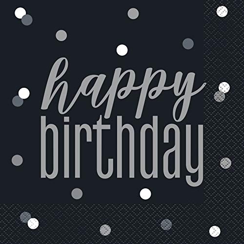 Unique Party 83582 - Tovaglioli di Carta - 16,5 cm - Compleanno Glitz Nero e Argento - Confezione da 16
