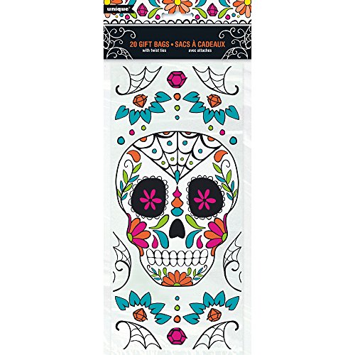 Confezione da 20 sacchetti trasparenti Skull Day of the Dead Halloween goodie bags