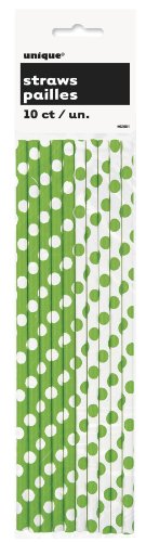 Unique Party Dots Straw Cannucce di Carta in Set da 10, Verde (Verdognolo), Confezione