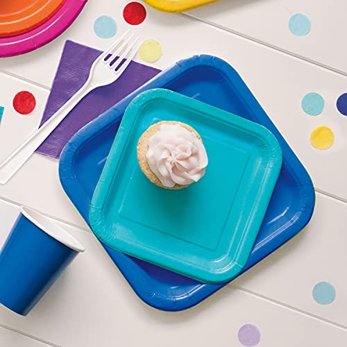 Confezione di 14 Piatti di Carta Quadrati Blu Reale