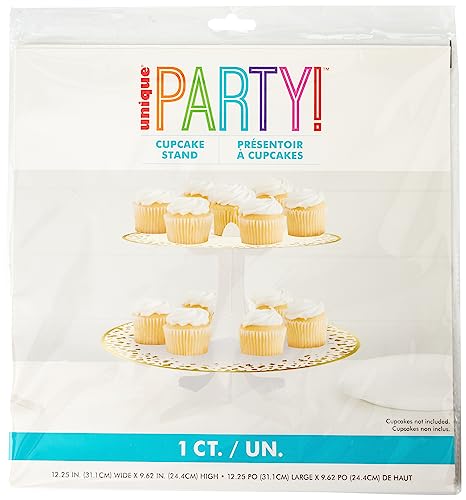 Unique- Supporto Rotondo cartoncino 1 pz. Alzata per Cupcake-Design con Coriandoli in Foil d'oro, Gold, Taglia unica, 73989
