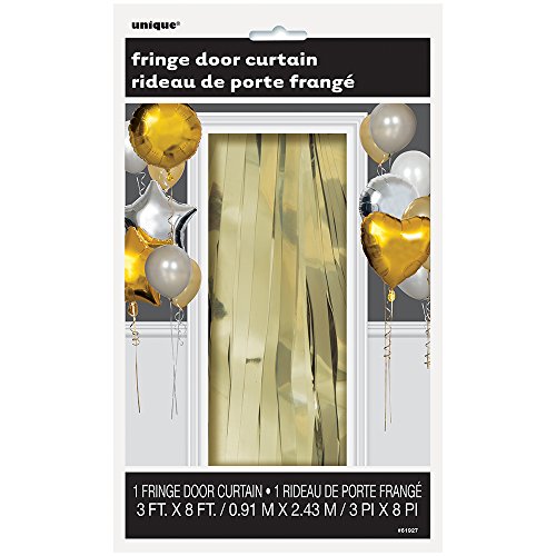 Unique- Tenda con Frange in Foil Dorato-91 cm x 244 cm, Gold, 61927