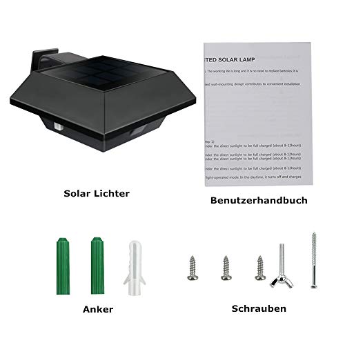 【fotosensore & -Tool gratis】Auto ON / OFF. La luce della recinzione solare è facile da installare. Può montare ovunque all'esterno, ad es. sotto il tetto, sul recinto, sulle pareti, sul pilastro, sugli alberi, sulla grondaia ecc. Nessun sensore di movimento.