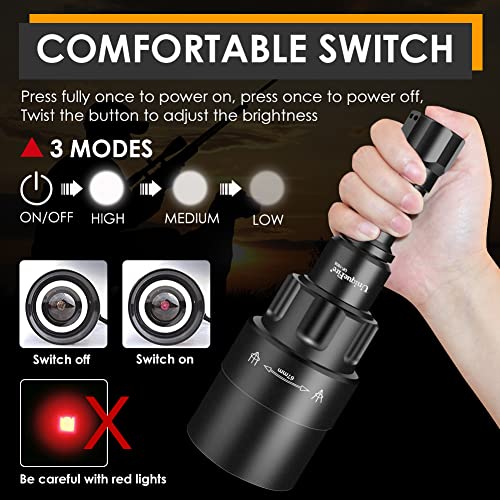 【LUNGO RAGGIO ILLUMINAZIONE】Circa 50-150 metri di raggio con il fascio concentrato. Sistema di 3 modalità (basso-medio-alto) con la memoria modalità.