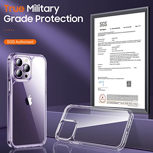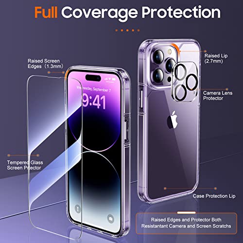UniqueMe [5-in-1-Set] iPhone 14 Pro Max Custodia,Grado Militare Antiurto(1 Cover + 2 Fotocamera),Anti-ingiallimento - Trasparente