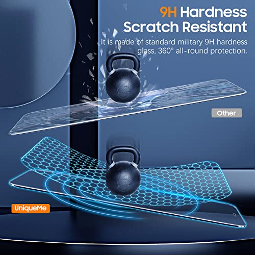 [Pellicola Protettiva Standard Militari] Questa iPhone 12 Pro Max pellicola protettiva UniqueMe è realizzata secondo lo standard militare tedesco di durezza 9H. Una volta rinforzato, il nostro vetro protettivo non si romperà sul bordo come altri prodotti economici. Anche se il telefono cade da 1 metro su una superficie dura, lo schermo rimane intatto. Al costo di una tazza di caffè, potrete evitare una costosa manutenzione dello schermo.