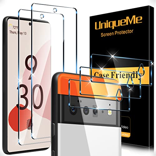 UniqueMe [ 2+2 Pezzi Pellicola Protettiva Compatibile con Google Pixel 6, [ 2 Pezzi ] Vetro Temperato Pellicola e [ 2 Pezzi ] Pellicola Fotocamera ,[Bubble-Free] Anti-Scratch [9H Hardness].