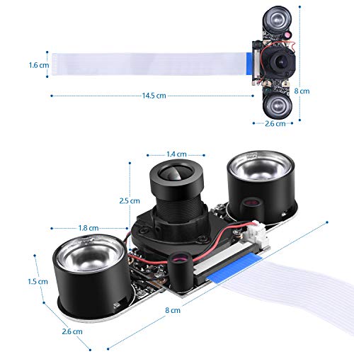 UNIROI Raspberry Pi Camera, 5MP Sensore OV5647 1080p HD Webcam con Commutazione Automatica IR-Cut Day/Night Vision Messa a Fuoco Regolabile per Modello Raspberry Pi B B + A + RPI 4 3 2 1 - UC026