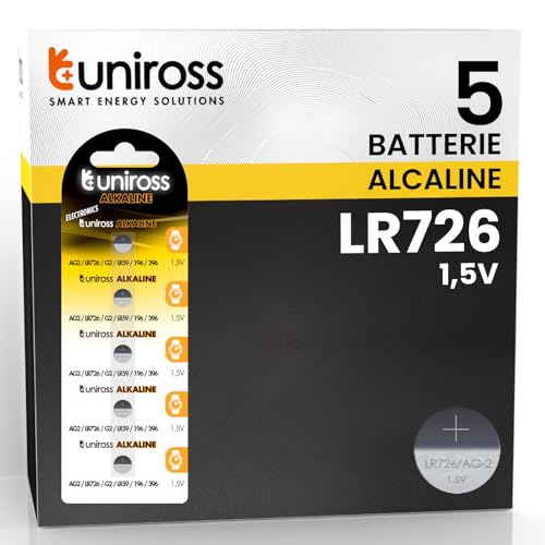 Uniross Pila Batteria AG2 / LR726 / G2 / LR59 / 196/197 / 396 1,5V Pile Alcaline a Bottone - 5 Batterie