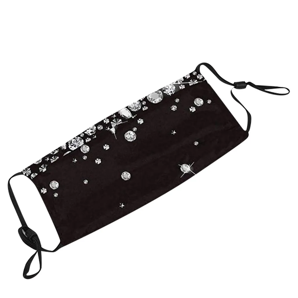 Unisex Breathable Bling Diamonds Unisex Half Washable Face Mouth Cover Face Mask for Outdoors Black Protective PM 2.5 Dust