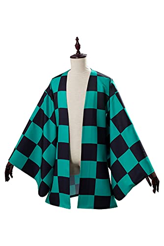 Unisex Demon Slayer Costume Cosplay Kamado Tanjirou Kimetsu no Yaiba Mantello Anime Halloween Cardigan Robe Giacca, Verde, S